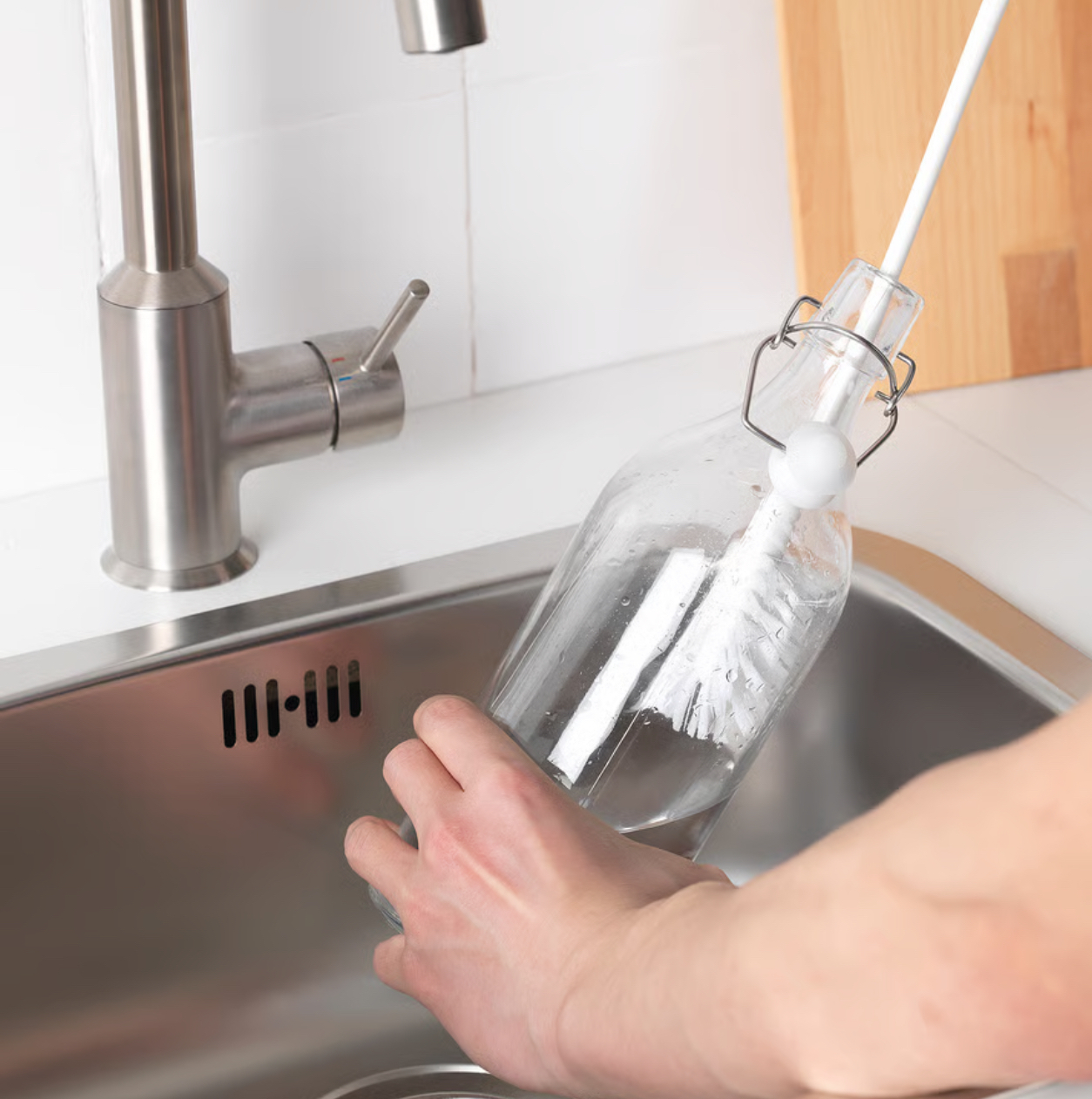 دسترسی و شستن داخل بطری ها و شیشه های باریک را آسان تر می کند. آن را به یک قلاب کنار سینک آشپزخانه آویزان کنید تا همیشه آن را در دسترس داشته باشید.