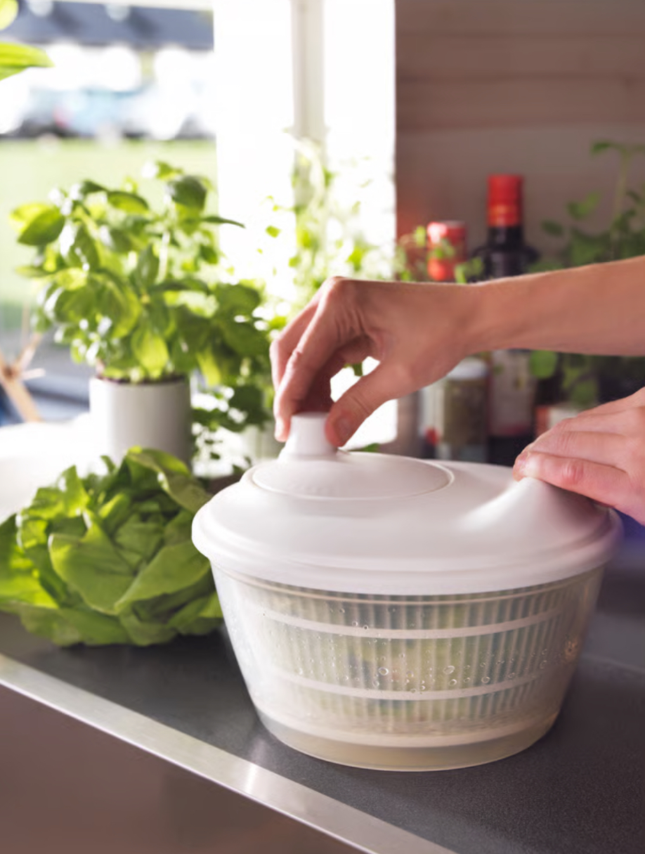 اگر از کاهوی خیس خسته شده اید، سالاد اسپینر UPPFYLLD راه حلی برای شماست. سالاد خود را بشویید و خشک کنید - به سرعت و به راحتی. سپس می توانید از کاسه برای سرو یک سالاد تازه و ترد استفاده کنید!
