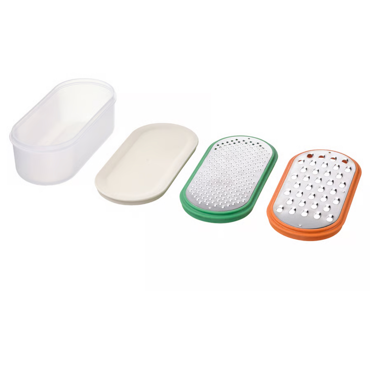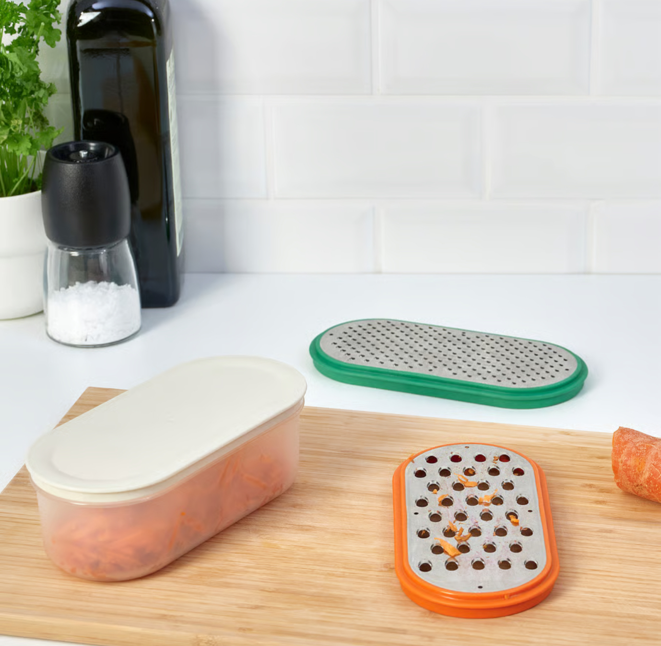 مواد خود را مستقیماً در ظرف رنده کنید و سپس با درب داخل ظرف نگهداری کنید. رنده در 2 اندازه موجود است - و می توانید کل محصول را در ماشین ظرفشویی بشویید. ساده و کاربردی!